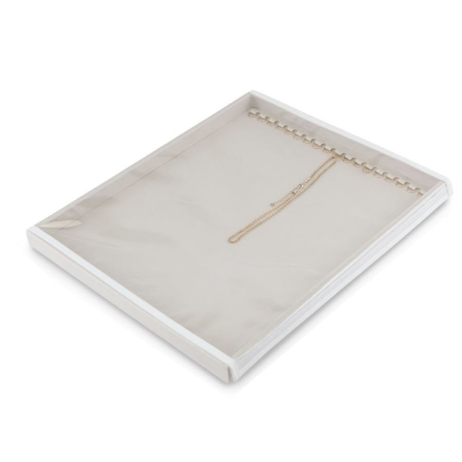 - Capacidade Funcional: Com 17 suportes especialmente projetados para gargantilhas, essa bandeja oferece espaço suficiente para uma variedade de peças, permitindo uma organização eficiente e facilitando a visualização dos clientes.