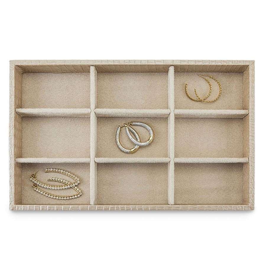 - Capacidade: Com nove espaços individuais, esta bandeja é ideal para armazenar brincos, anéis, pingentes e outras pequenas joias, mantendo-as organizadas e facilmente acessíveis.
