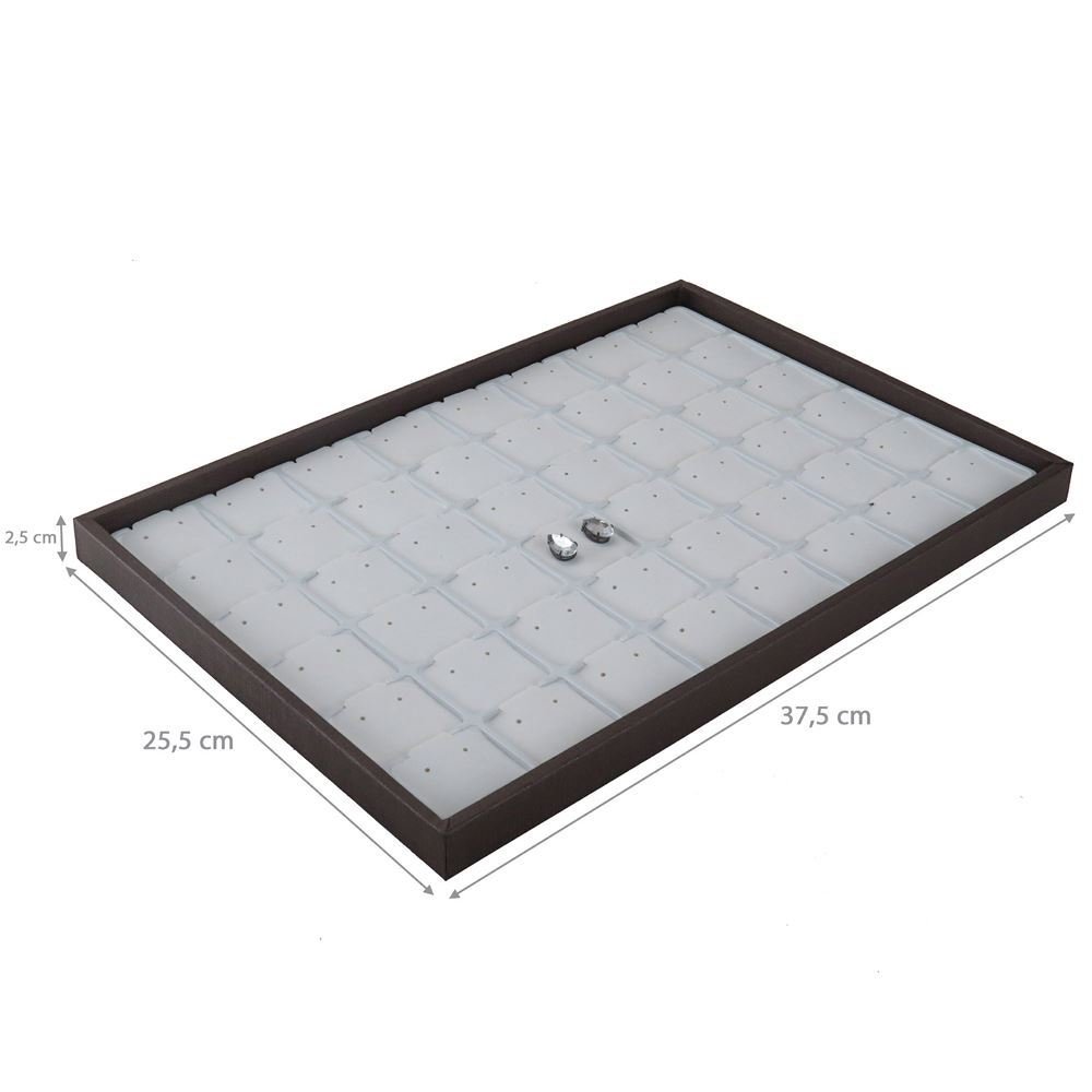 - Capacidade: Contém 48 cartelas, cada uma comportando 1 par de brincos.