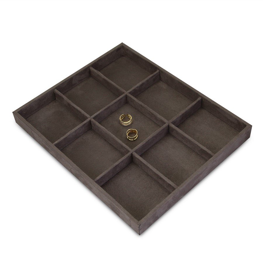 Apresentando nossa Bandeja com 9 Espaços, ideal para organizar e exibir suas joias com estilo e eficiência. Projetada com atenção aos detalhes, esta bandeja é perfeita para revendedores que desejam manter suas peças bem apresentadas e acessíveis assim como para o uso pessoal também.- Material: Fabricada com materiais de alta qualidade, garantindo durabilidade e uma apresentação sofisticada.