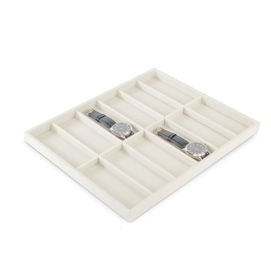 A nossa Bandeja para Relógio é a escolha ideal para quem busca organizar e exibir suas peças com elegância e praticidade. Fabricada com materiais de alta qualidade, esta bandeja proporciona não apenas um visual sofisticado, mas também a durabilidade necessária para uso tanto profissional quanto pessoal. Seja em uma loja, feira de joias ou no conforto da sua casa, esta bandeja atende todas as necessidades de armazenamento e exposição, mantendo seus relógios sempre bem cuidados e acessíveis.Características: