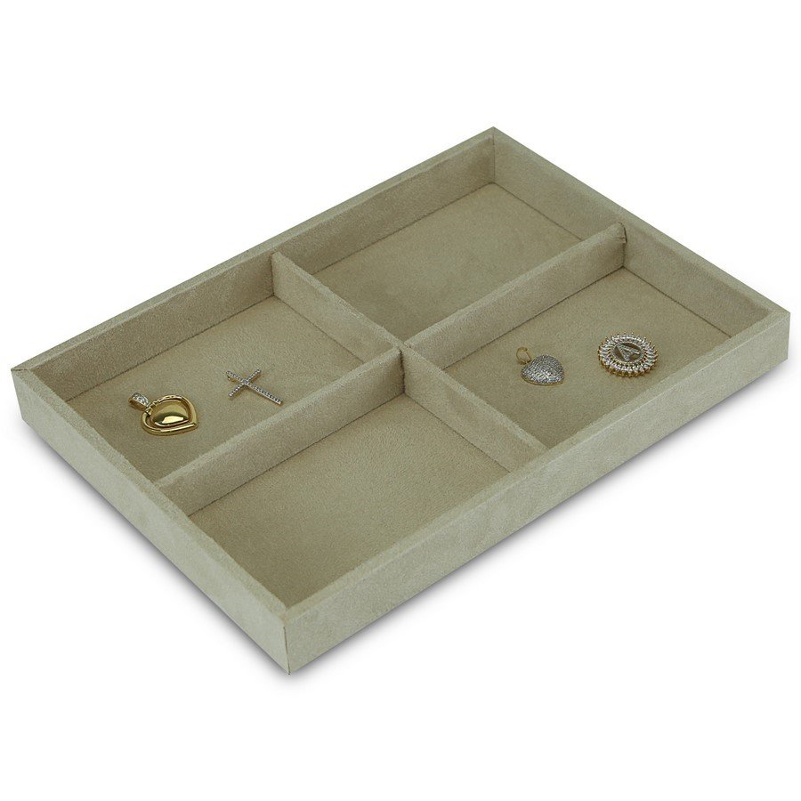 Bandeja Média Expositora para Joias - 21,5x29,5x3,3 cm. Suede Bege
