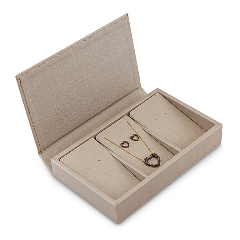 O Estojo 3 Espaços Cartelas combina funcionalidade e estética, sendo um acessório essencial para quem valoriza a organização e o cuidado com suas joias.