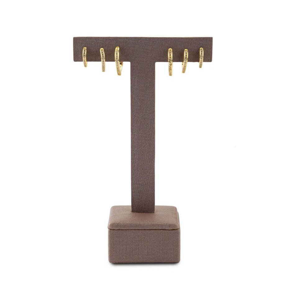 Design: Formato de "T" que proporciona uma exibição vertical e destacada dos brincos, três furos bem posicionados para acomodar e exibir diferentes estilos de brincos.