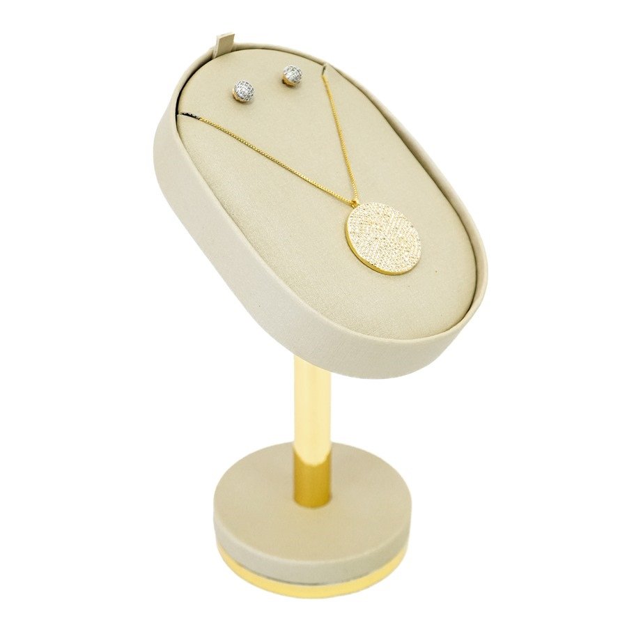 Design pensado para destacar gargantilhas e brincos simultaneamente