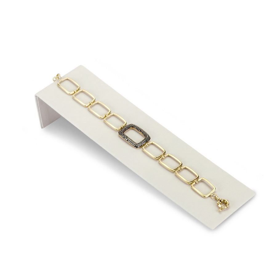 O design inclinado deste expositor é ideal para realçar suas pulseiras, proporcionando uma apresentação visualmente atraente que chama a atenção dos clientes. Sua estrutura robusta assegura durabilidade, enquanto o design elegante e moderno complementa qualquer vitrine ou mostruário, ajudando a destacar as suas joias de forma profissional.