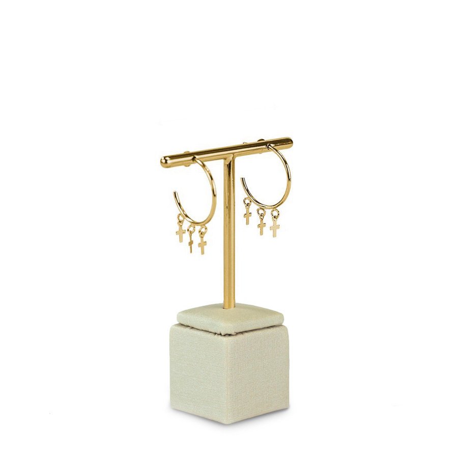 - Design Prático: Formato "T", projetado para exibir os brincos de forma clara e acessível.
