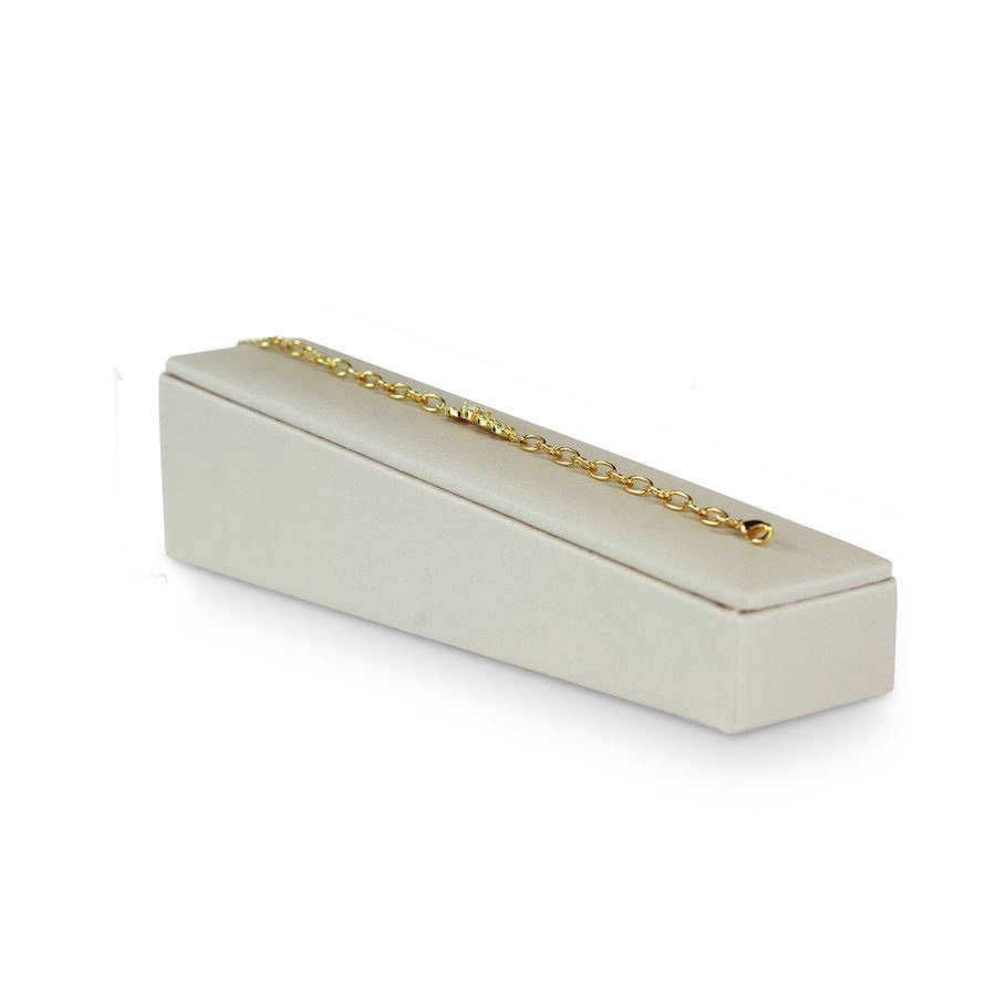 Ideal para exibir pulseiras com estilo e sofisticação, este expositor inclinado é projetado para destacar suas peças de maneira organizada e atraente. Perfeito para joalheiros e colecionadores que desejam uma apresentação visual impactante.Características: