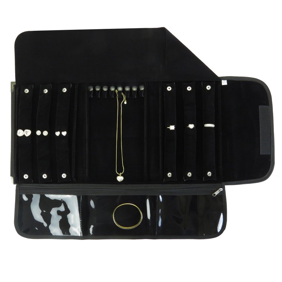 - Com capacidade para até 39 pares de brincos, 8 presilhas com botões para correntes/pulseiras e 3 suportes para anéis, acompanhados por 3 bolsos adicionais, oferece espaço suficiente para uma coleção diversificada.