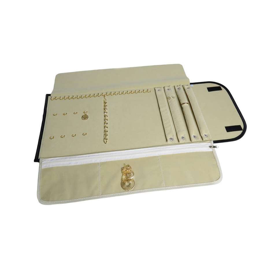 Pasta Mostruário Para Joias - Com 3 Bolsos -Tamanho 25x60cm Vinil Preto - Veludo Bege