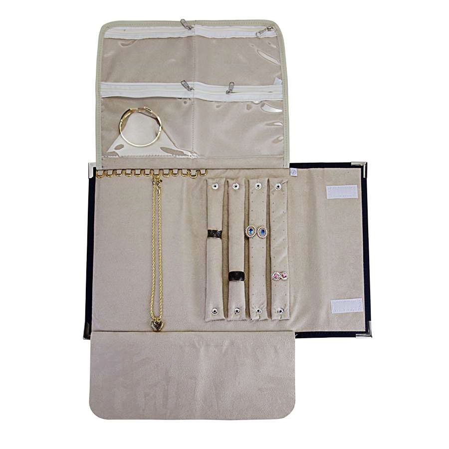3. Pasta Pequena Mostruário para Joias - 27x42,5 cm. Rodes Azul Marinho Metalizado - Suede Bege