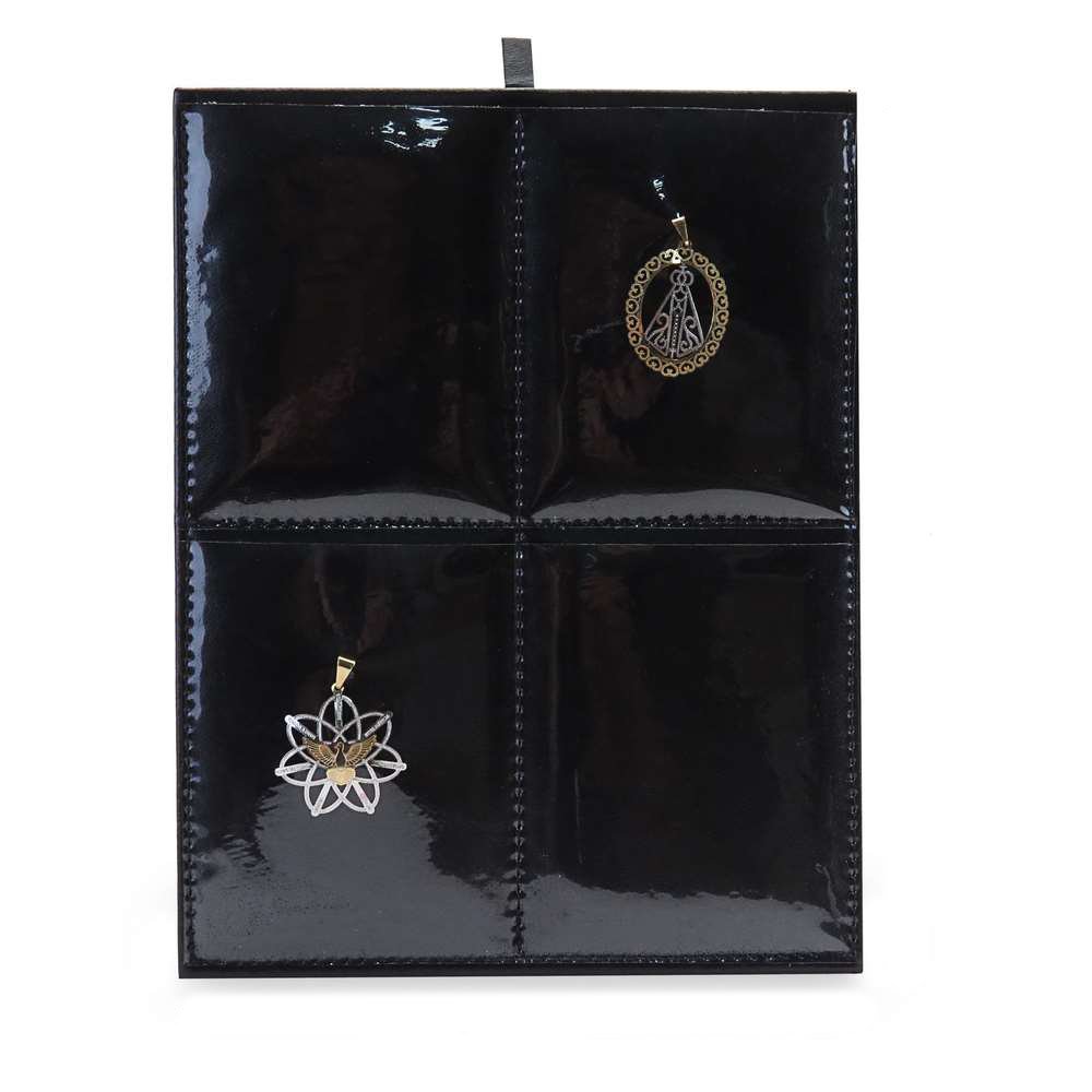 A nossa Placa para Joias é o mostruário perfeito para revendedores de joias que procuram uma apresentação elegante e funcional para suas peças. Com um design clássico e discreto, este caderno oferece suportes práticos e resistentes, tornando-o ideal para exibição profissional. Perfeito para organizar e exibir seus pingentes de maneira eficiente e acessível.Características:
